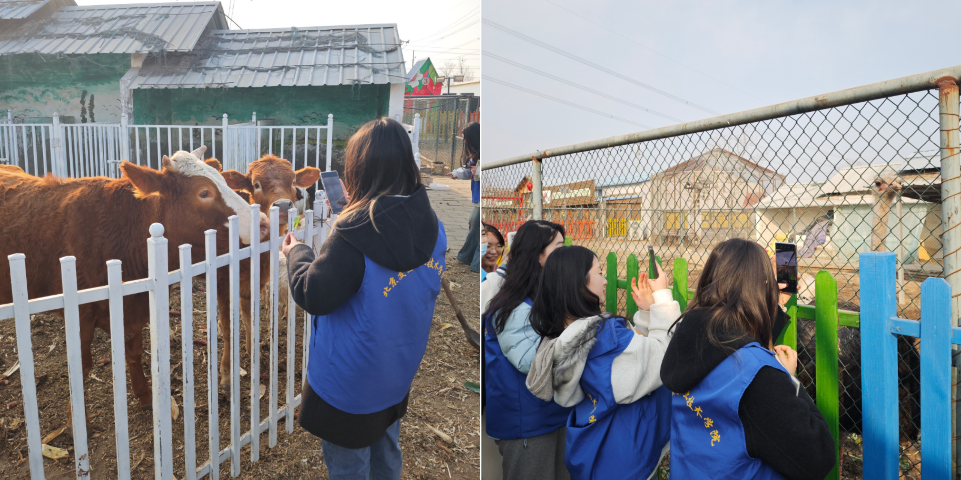 在座談會后,合作社負責人崔維國帶領兩校師生參觀了占地100畝的智慧大棚。崔維國老師對草莓品種、培育技術、監測設備以及產量進行了詳細介紹。同學在品嘗草莓的同時,更直觀感受到了現代農業的魅力以及鄉村振興政策為老百姓帶來的利好。 隨后,我院師生在負責人的帶領下還參觀了園區里的多肉大棚以及“動物樂園”,同學們在投喂鴕鳥、撫摸牛羊的過程中,切身感受生態農業的人文溫度。