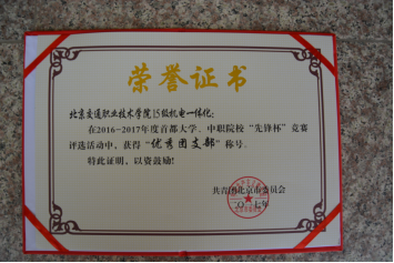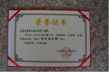 為全面貫徹黨的十八大和十八屆三中、四中、五中、六中全會精神,深入學習貫徹習近平總書記系列重要講話精神,深化共青團改革,著力推進基層組織建設,推動首都大學、中職院校共青團系統工作,在首都高校青年團員中選樹典型、表彰先進、推廣經驗,在2016——2017年度首都大學、中職院校“先鋒杯”的評比表彰中,我院15道橋團支部、15級機電一體化團支部和15級旅游管理團支部被授予“2016——2017年度首都大學、中職院校‘先鋒杯’優秀團支部”榮譽稱號。