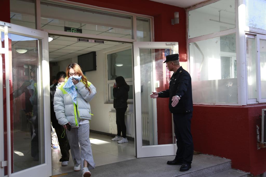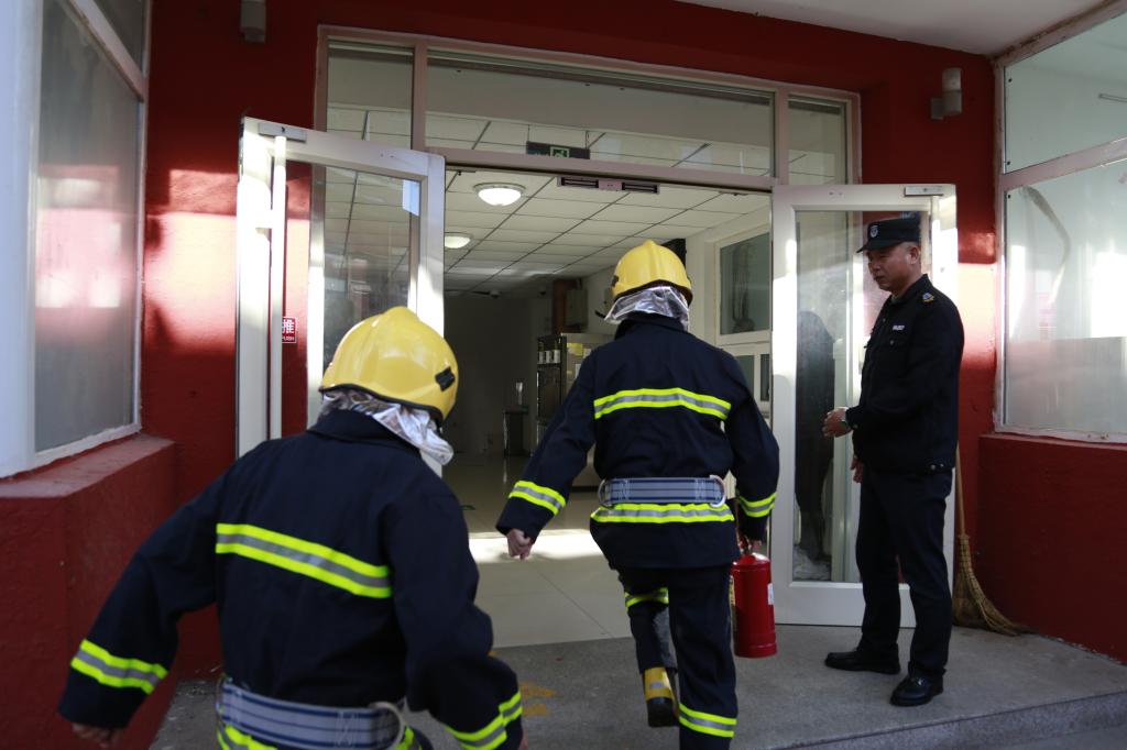 演練現場,總指揮王穎副院長通過消防廣播宣布疏散逃生演練正式開始。12:15,演練流程有序拉開:宿管員發現宿舍樓二層發生火情,中控室立即響應,并在總指揮指示下啟動消防應急疏散預案;隨后宿管員首先在宿舍樓內通過消防廣播進行通知預警并迅速上樓進行排查,確認是二層樓道出現火情,即刻拿取就近的滅火器、消火栓進行滅火;疏散組的工作人員則有序組織學生按照逃生通道進行疏散;微站隊員上樓進行滯留人員情況排查;警戒組做好樓門警戒;截至12:25,火情被完全控制;12:30,全部學生疏散到室外安全空曠地帶,警情完全解除;醫療救護組、影像采集組密切配合,一切工作有條不紊的進行,演練順利結束。