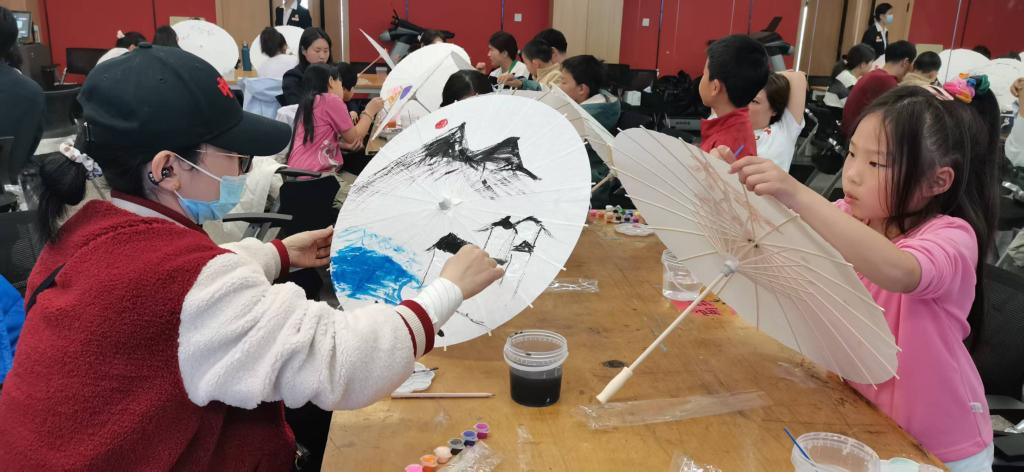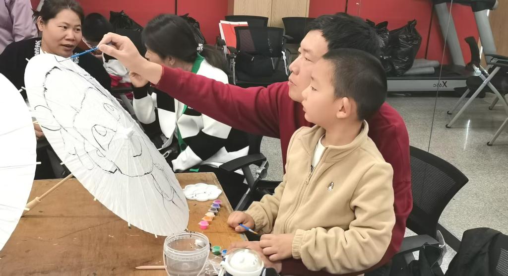 在陳老師的示范和指導(dǎo)下,家長(zhǎng)和孩子們紛紛拿起畫筆,發(fā)揮自己的創(chuàng)意,在潔白的油紙傘面上盡情創(chuàng)作,描繪出各種圖案?,F(xiàn)場(chǎng)的親子家庭溫馨滿滿,他們相互協(xié)作、相互啟發(fā),共同完成了別出心裁、獨(dú)一無二的油紙傘,增進(jìn)了親子之間的情感交流。