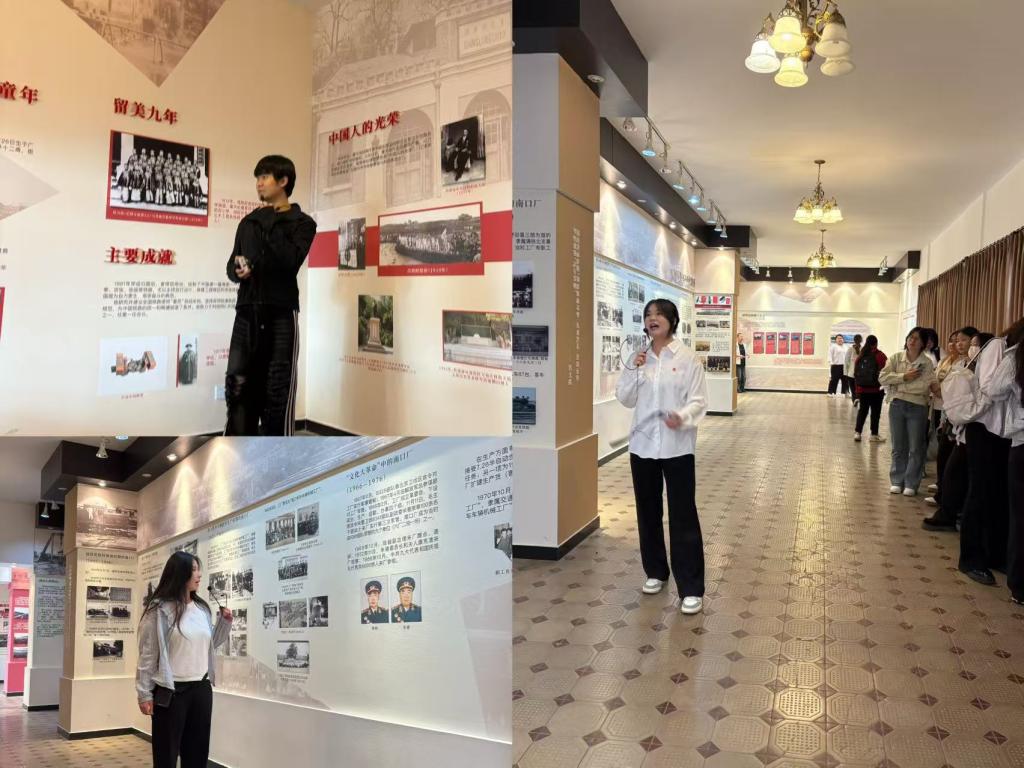 一張張歷史大事紀念照片,一件件仿真舊物,激蕩百年的歷史在同學們的講解中娓娓道來。大家被詹天佑先生強烈的愛國熱情和擔當精神感動,被他“各出所學,各盡所知,使國家富強,不受外侮,足以自立于地球之上”的教誨感染。
