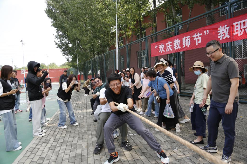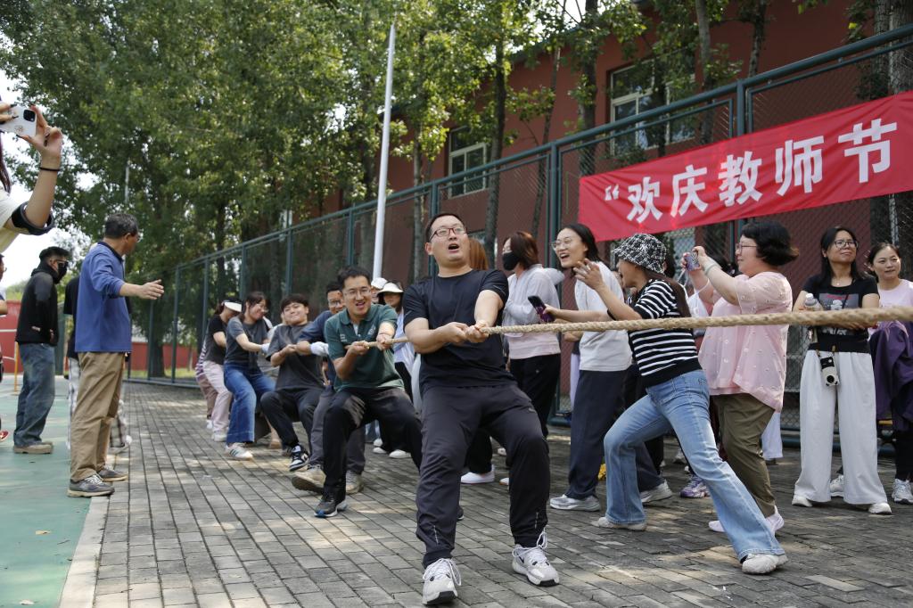 秋風拂面,佳節(jié)傳情。在第41個教師節(jié)這個溫馨又崇高的日子里,為弘揚尊師重教的傳統(tǒng)美德,營造團結奮進的校園氛圍,9月10日中午,學院工會在教一樓前籃球場隆重舉行“歡慶教師節(jié)”教職工拔河比賽。