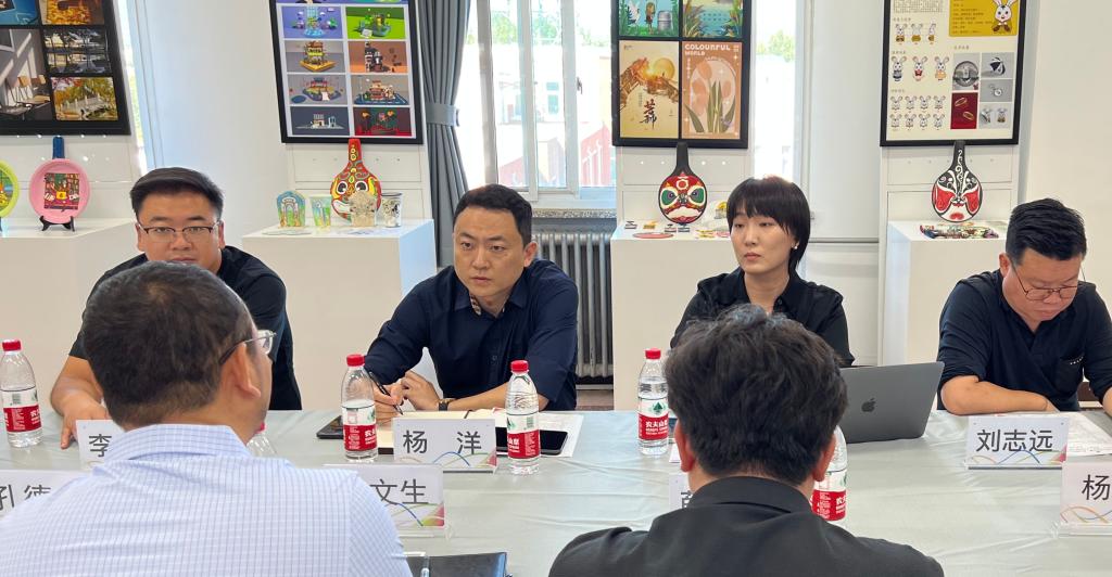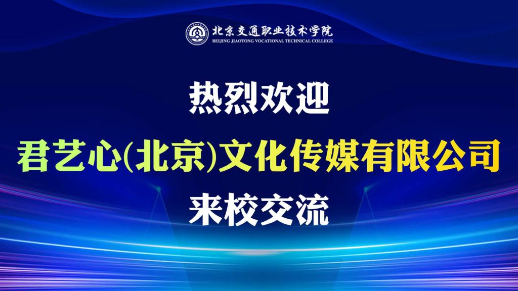 2023年9月21日下午,君藝心(北京)文化傳媒有限公司教育事業部副總經理楊洋、人事經理張穎、項目總監李東東、及運營總監劉志遠一行四人來到北京交通職業技術學院,參加數字創意共贏主題交流會。學院路橋系主任楊文生、黑龍江三江美術職業學院教務主任薛明儒、學院運營管理系教師黃謙、數字媒體專業教研室主任楊碩、以及數字媒體專業教師楊海燕、陳瑩嬴、周克參會出席,會議由楊文生主任主持。