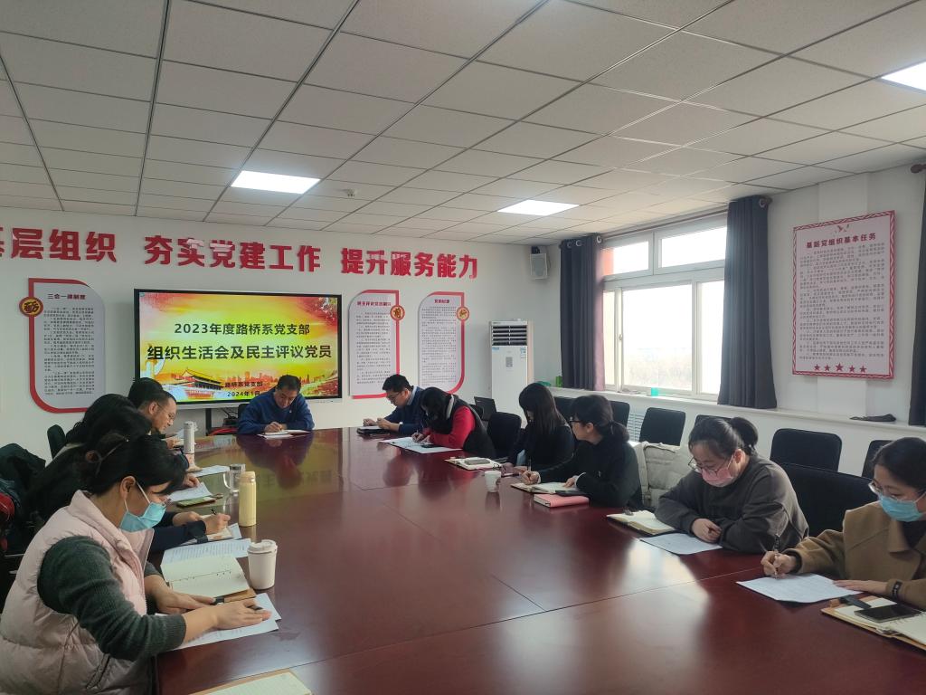 按照學院黨委《關于召開2023年度基層黨組織組織生活會和開展民主評議黨員的通知》要求,路橋系黨支部于2024年1月18日下午召開2023年度組織生活會和開展民主評議黨員。路橋系黨支部全體黨員參加會議,學院黨委委員、工會主席高波同志出席會議,路橋系黨支部宣傳委員楊碩主持會議。