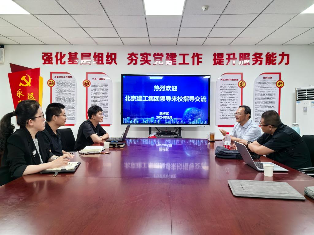 5月14日,北京建工集團智能建造中心智能建造推廣部部長沈勃斌、付聰一行蒞臨我院研討交流,路橋系主任楊文生、書記孔德成、科研處處長林永清、建設工程管理教研室主任李甜甜參會出席。