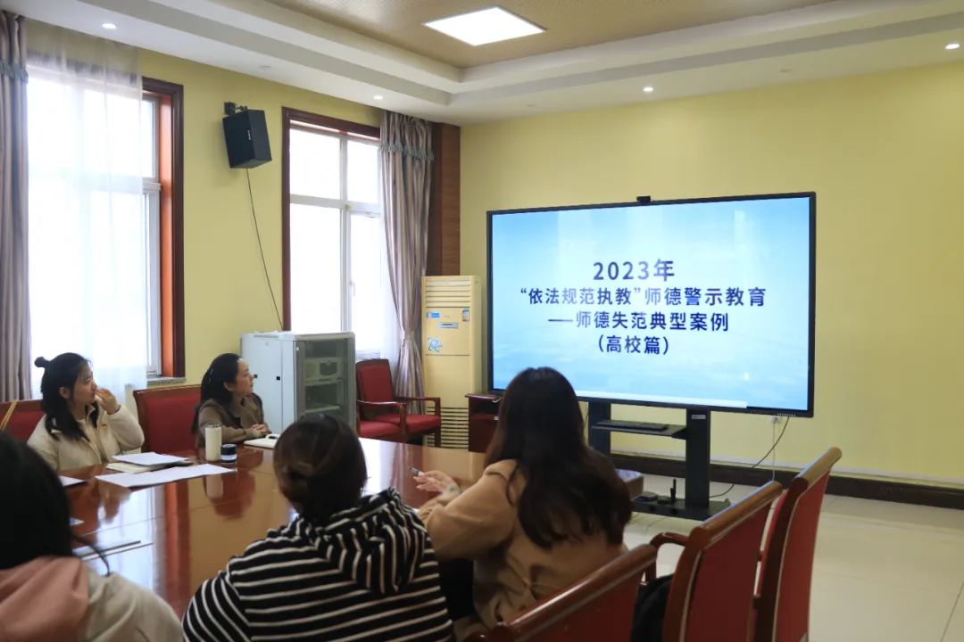 隨后,徐晶晶主任帶領大家學習《教育部公布的違反教師職業行為典型案例匯編(高校教師部分)》并觀看了相關視頻。徐主任特別強調了這些案例中教師的失范行為對學校和社會的惡劣影響,以及對學生造成的無法彌補的傷害。她指出,作為教師我們應該時刻銘記自己的職責和使命,以身作則,樹立良好的師德形象。