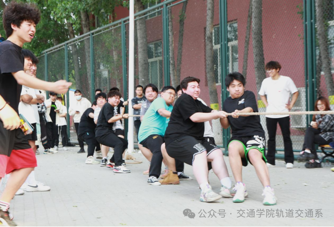 鼓動青春,轉動激情。在拔河比賽中,各班級隊伍更是展現強大凝聚力,雙方隊伍緊握繩索,摩拳擦掌,排兵布陣,裁判員嚴肅認真,公正執裁,這是一場班級與班級間的榮譽之戰,場邊的同學們也為場上的同學加油喝彩、吶喊助威,同學們堅毅的眼神、颯爽的身姿、拼搏的精神,匯成交通學院最亮眼的風景線,也充分展現了軌道交通系學子昂揚向上的精神風貌。