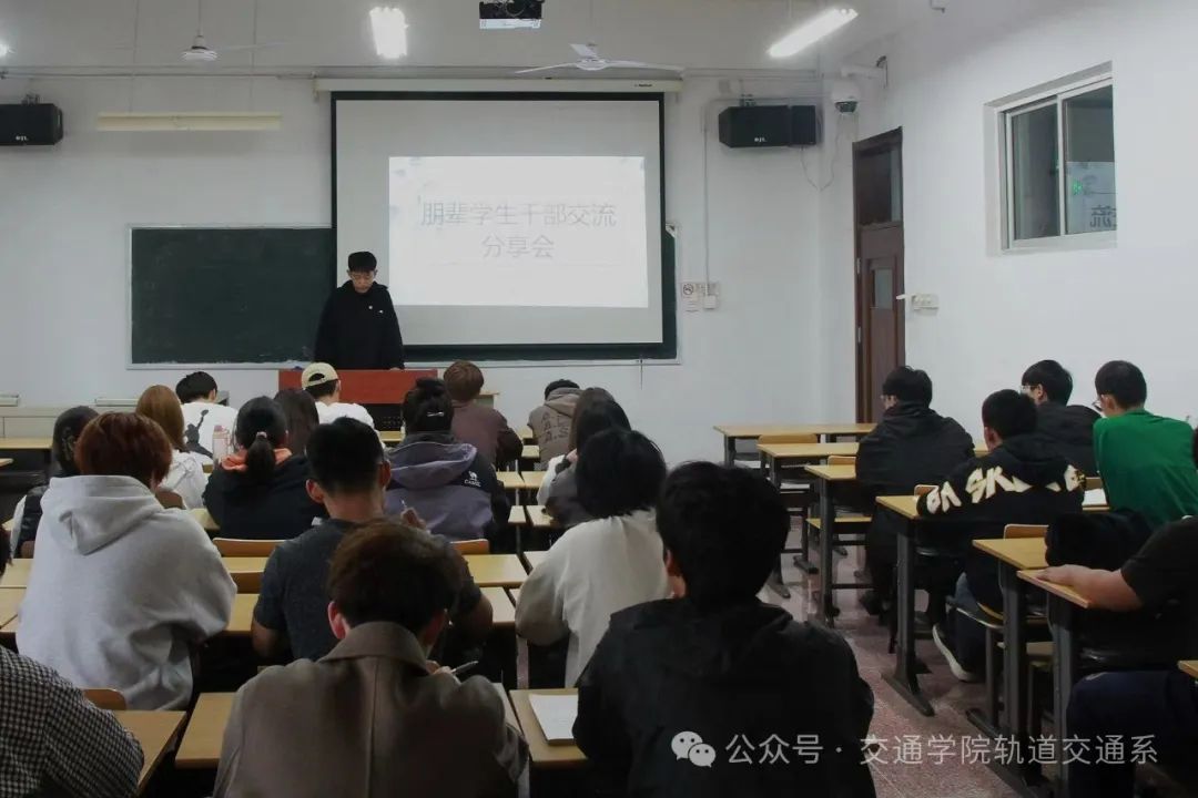 為充分發揮朋輩榜樣引領作用,及時解決同學們對于學生工作方面的疑問與困惑,適應同學們對于學生干部的身份轉變,提升學生綜合能力,幫助學生合理制定成長規劃,軌道交通系的朋輩學生干部交流分享會于2024年10月9日星期三,在教一樓405舉行。眾多學生干部齊聚一堂,共同分享經驗、交流心得,為提升學生工作水平注入新的活力。