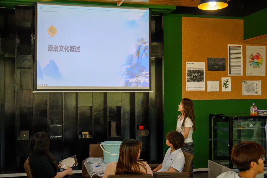 活動伊始,負責人向同學們詳細介紹了漆扇的歷史淵源、制作工藝和藝術價值。-把把精美的漆扇圖片展示在同學們面前,從傳統圖案到現代設計,每-把扇子都承載者獨特的文化內涵,深深吸引了大家的目光。同學們紛紛感嘆中國傳統工藝的精湛,對即將開始的制作環節充滿期待。