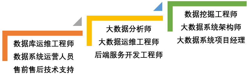 大數(shù)據(jù)技術(shù)專業(yè)方向的畢業(yè)生初級崗位主要為數(shù)據(jù)庫運(yùn)維工程師,數(shù)據(jù)系統(tǒng)運(yùn)營人員以及售前售后技術(shù)支持。優(yōu)秀畢業(yè)生或者經(jīng)過1-3年工作歷練后可擔(dān)任大數(shù)據(jù)分析師,大數(shù)據(jù)運(yùn)維工程師以及后端服務(wù)開發(fā)工程師等中級崗位。特別優(yōu)秀的畢業(yè)生或經(jīng)過3-5年工作磨煉之后可以擔(dān)任數(shù)據(jù)挖掘工程師,大數(shù)據(jù)系統(tǒng)架構(gòu)師或大數(shù)據(jù)系統(tǒng)項(xiàng)目經(jīng)理。