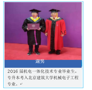 2016屆機電一體化技術專業畢業生,專升本考入北京建筑大學機械電子工程專業。