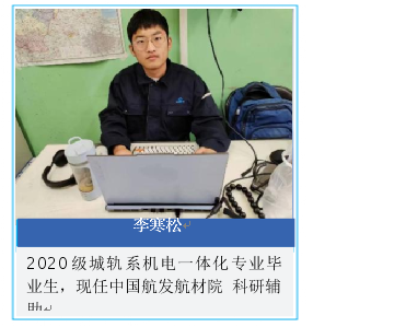 2020級城軌系機電一體化專業畢業生,現任中國航發航材院 科研輔助