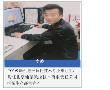 2016屆機電一體化技術專業畢業生,現任北京迪蒙數控技術有限責任公司機械生產部主管