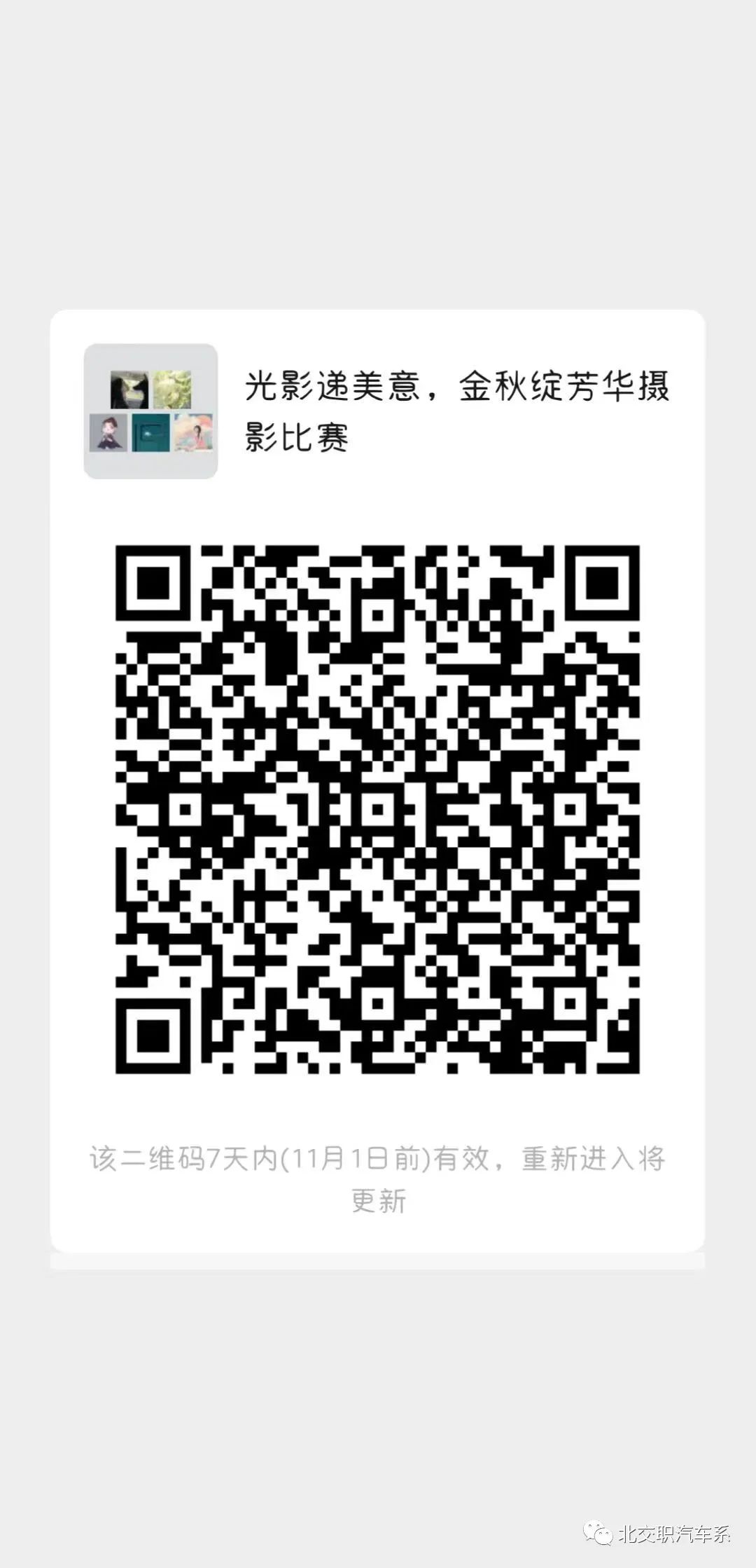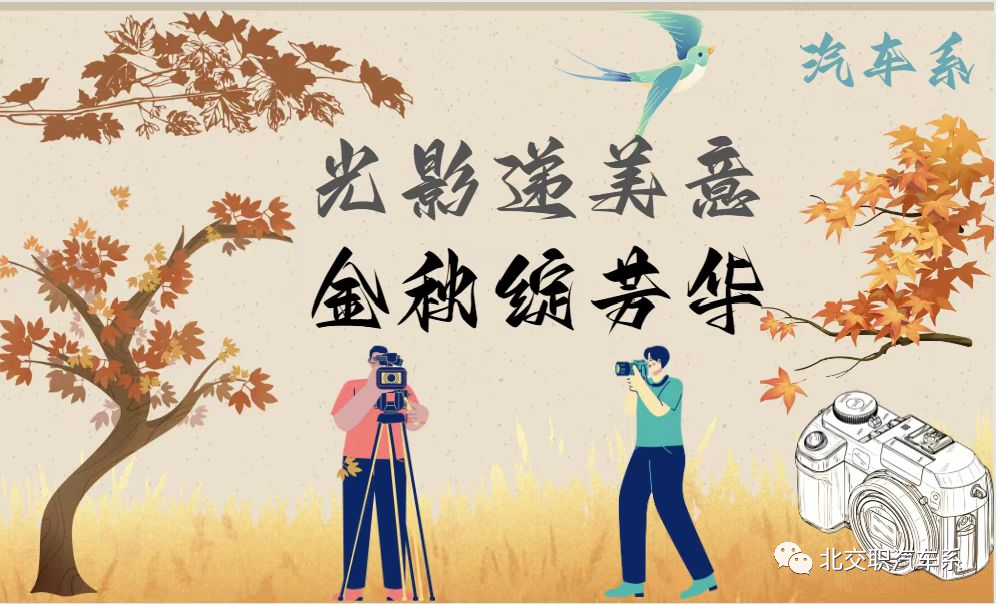 近期,北京交通職業技術學院汽車系將開展以“光影遞美意金秋綻芳華”為主題的攝影比賽活動,其目的是為了豐富校園文化生活,培養學生審美觀,通過比賽增強學生藝術與審美的交流,激發學生對攝影的興趣,讓同學們通過手中的相機去觀察生活、體驗生活,記載激勵人心、感人至深的瞬間,留住歡樂的回憶,分享多姿多彩的生活樂趣。