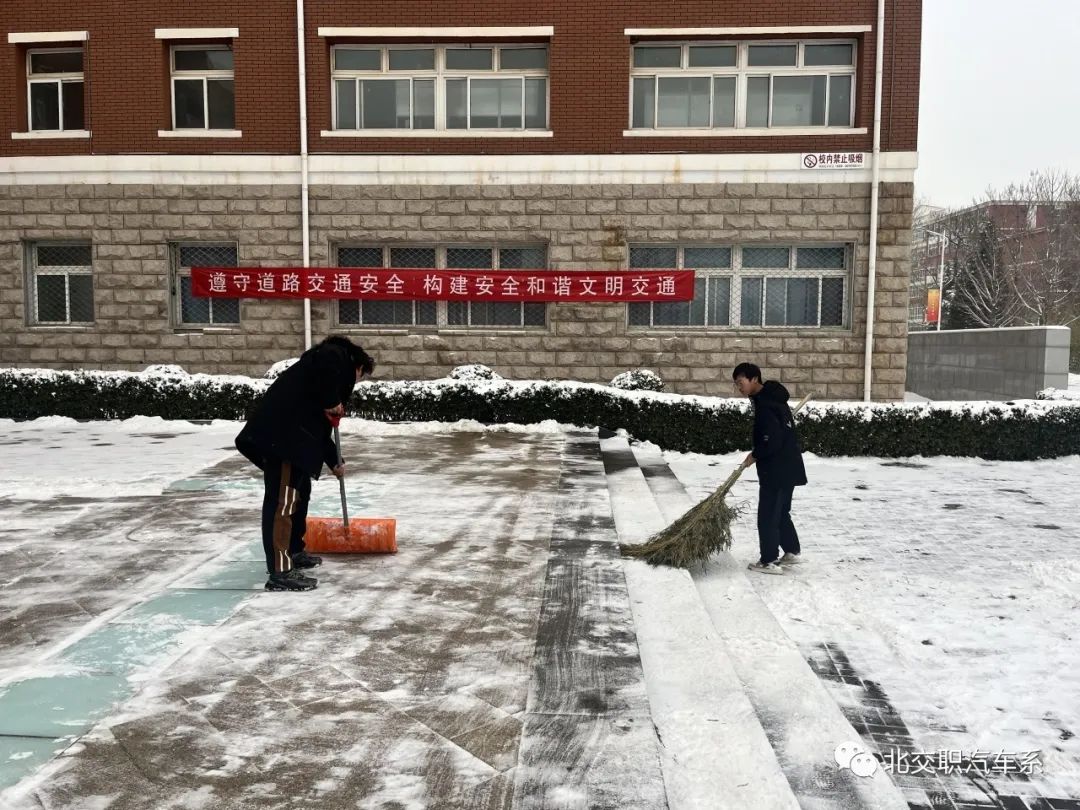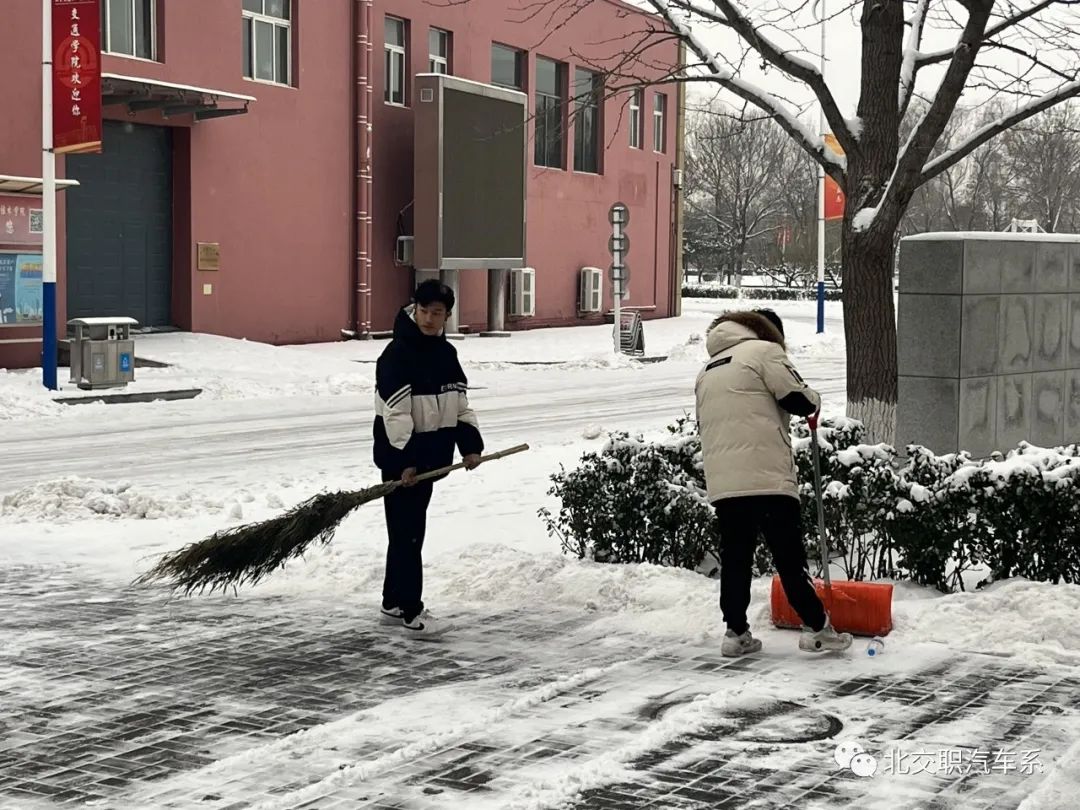 “風雪無情人有情,除冰掃雪暖人心",此次除冰掃雪活動不僅保障了我院師生的出行安全,同時也整潔了校園環境,為冬日的校園也增添了濃濃暖意!