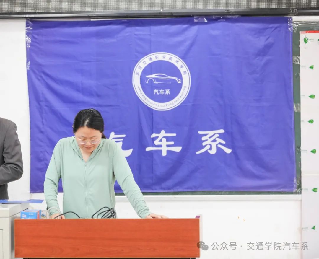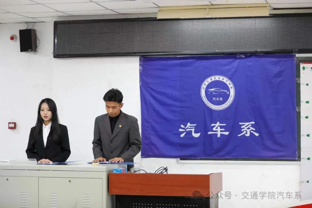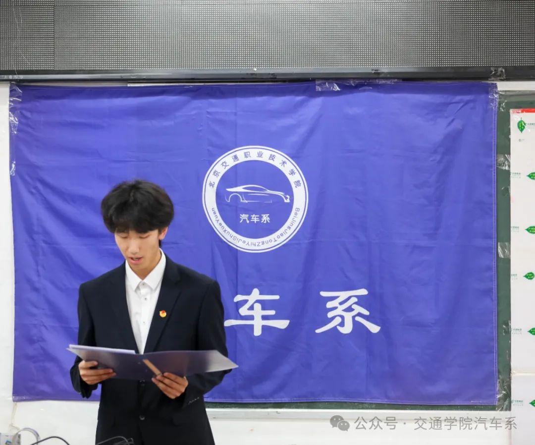 接下來由王圣潔老師宣讀23級學生干部競選結果,隨后新任組織部部長靳傲宇同學代表全體新任團總支學生會成員進行發言。靳傲宇同學表示,他們作為接班人要始終保持積極態度,十足的干勁。相信在他們的帶領和努力下,汽車系將迎來更好的明天,走向新的輝煌。