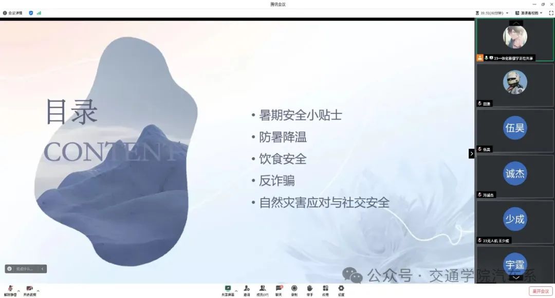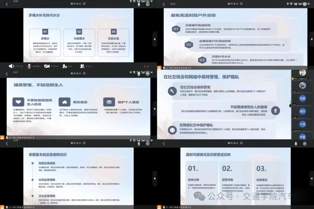 通過此次線上暑期安全班會,學生們不僅獲得了寶貴的安全知識,還增強了自我保護的能力。安全意識不是一時的警覺,而是需要我們時刻保持的一種生活態(tài)度。暑期安全班會不僅傳遞了重要的安全信息,更體現(xiàn)了我系老師們對同學們負責任的態(tài)度。它讓學生們明白,無論身在何處,安全永遠是我們生活的首要之事。