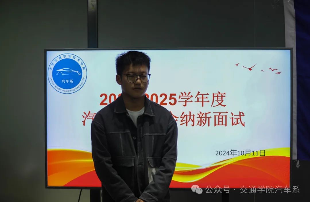 面試過程中,氣氛既緊張又活潑。各部門部長創新考察方法,以多樣化的面試環節深入考察同學們的綜合素質和應對能力。面對部長的提問與挑戰,同學們從容不迫,對答如流,充分展現了汽車系學子的風采與才華。