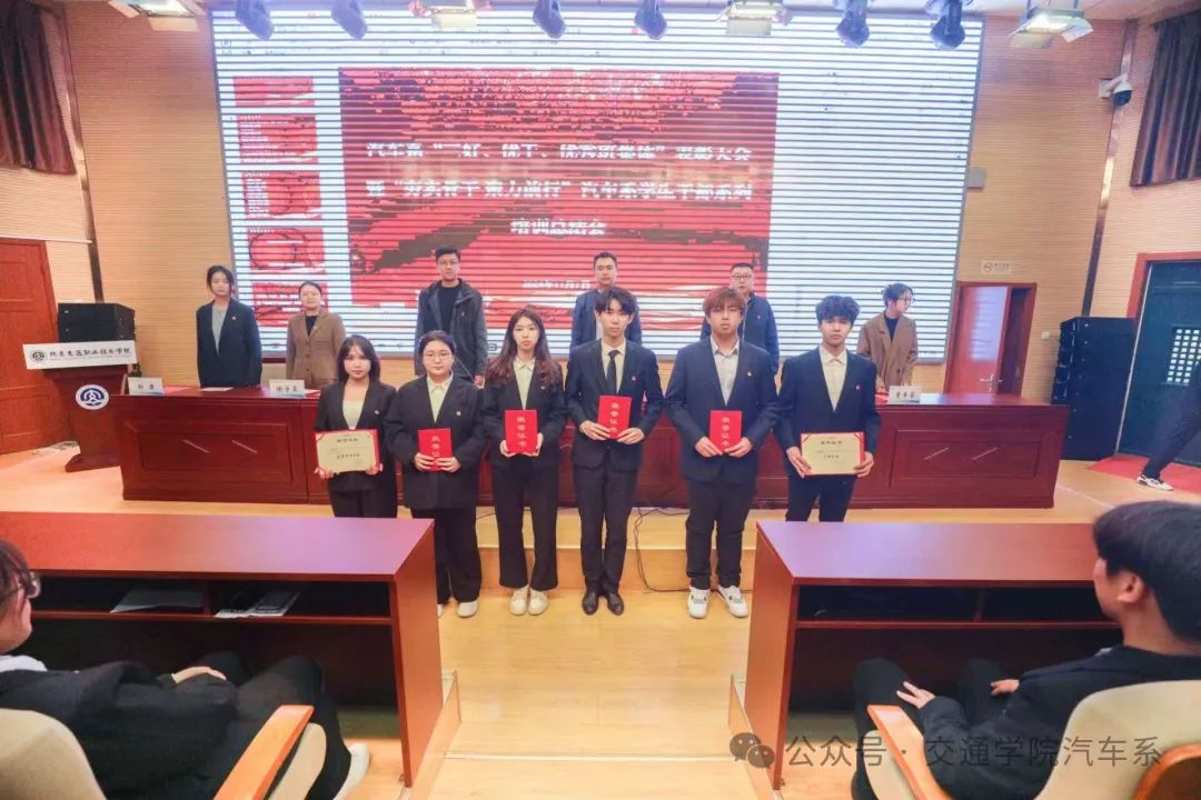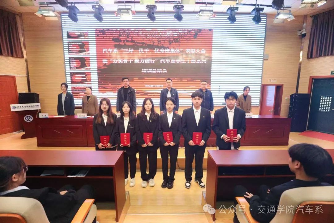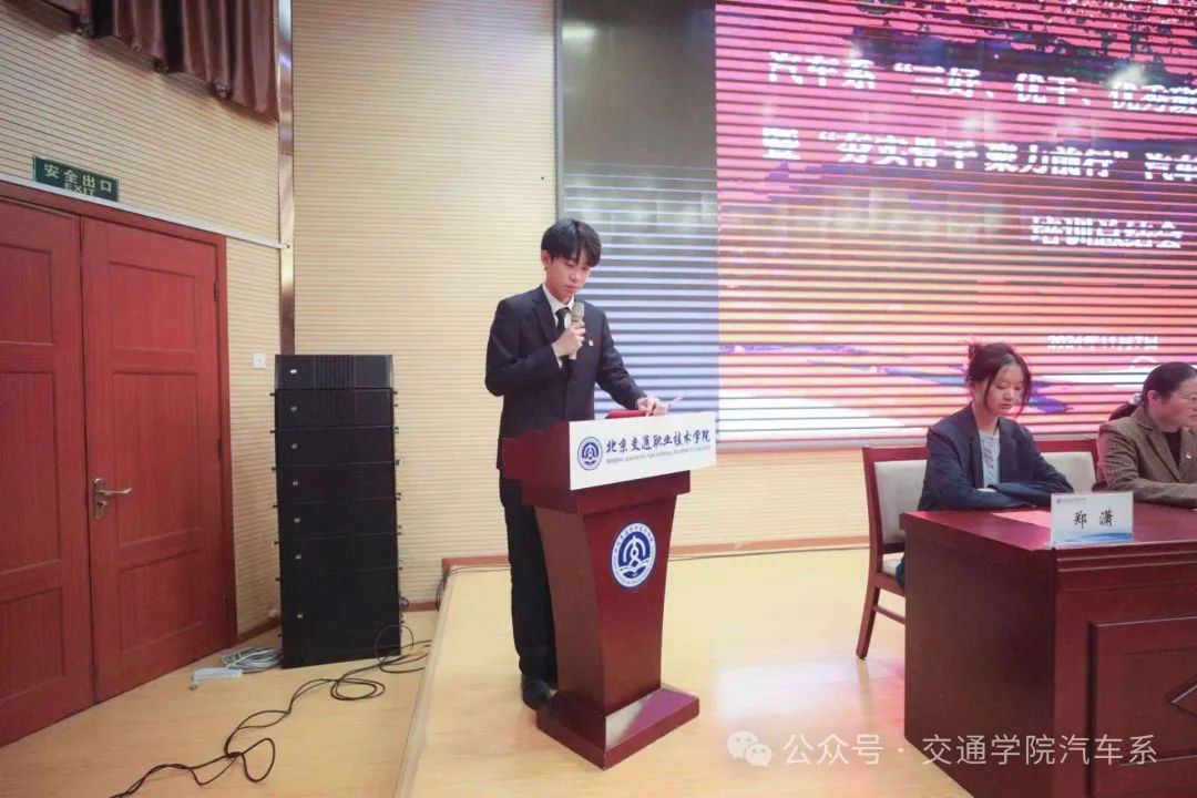2024年11月7日14點-14點30分,汽車系召開2024年“三好學生、優秀班干部、優秀班集體”表彰大會暨學生干部系列培訓總結會。汽車系黨支部書記徐國棟主持,北京交通職業技術學院黨委副書記、副院長李大泳,學生處處長董帥,汽車系班主任老師徐宇霆、鄭瀟、董辛蒙以及汽車系22、23級三好學生、優秀班干部代表和23、24級班級委員會成員出席。此次會議旨在表彰先進、樹立榜樣,同時為學生干部系列培訓畫上圓滿的句號,促進學生干部能力提升,為系部發展夯實骨干。