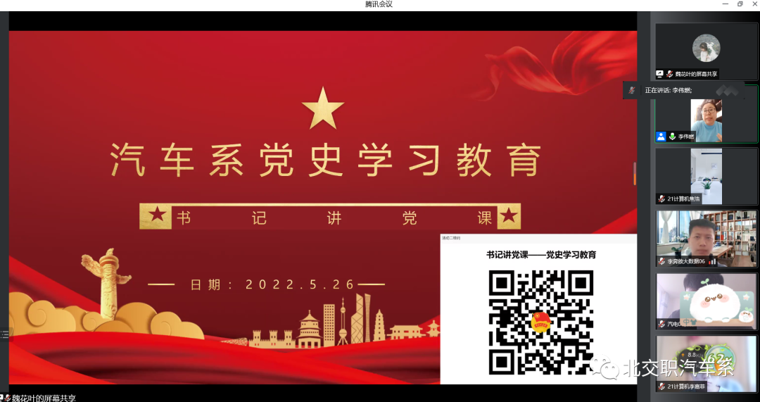 2022年5月26日下午,汽車系黨支部書記李偉燃老師開展黨史學習教育專題-書記講黨課活動,圍繞“學黨史,感恩黨,跟黨走”為主題,結合五四運動,喚醒民眾的故事,讓我們了解到中國共產黨成立初期的不易。李偉燃老師帶領大家全面系統地了解了五四運動的過程及內涵,回顧了五四運動的歷史背景,具體講述了五四愛國運動的整個過程及五四運動之后馬克思主義在中國的快速傳播。會上李偉燃老師向我們推薦了《覺醒年代》這部影視作品,并分享了她的感悟。