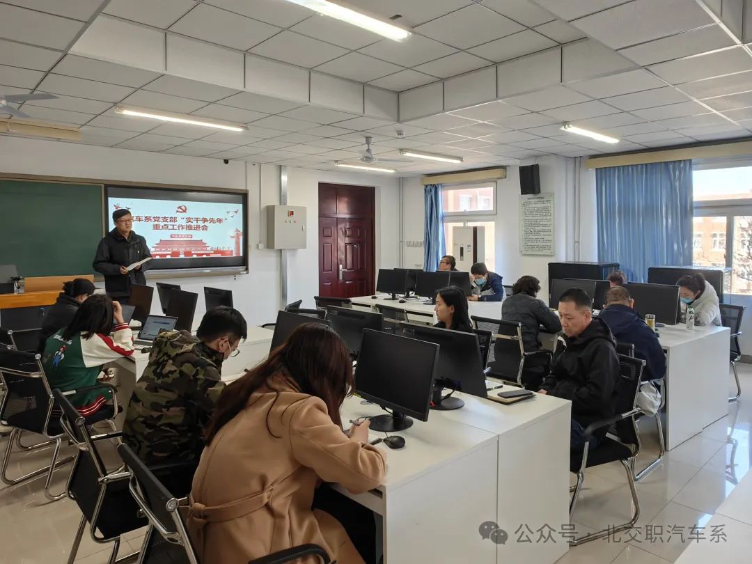 汽車系黨支部于3月28日在教一樓308實訓室召開“實干爭先年”重點工作推進會。汽車系黨支部全體黨員參加,黨支部書記徐國棟主持會議。