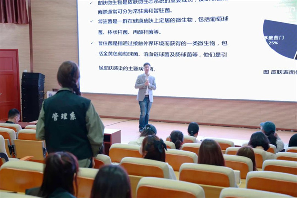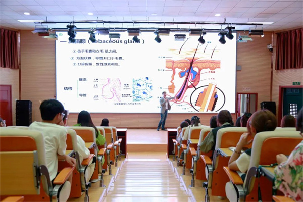 講座中周宇教授從皮膚的結(jié)構(gòu)、功能等方面入手,詳細(xì)介紹了常見的護(hù)膚誤區(qū)、護(hù)膚品的科學(xué)選擇及常見皮膚疾病的成因及治療方法等內(nèi)容,并對(duì)高職學(xué)生化妝品相關(guān)專業(yè)從業(yè)方向、發(fā)展趨勢(shì)做了介紹。