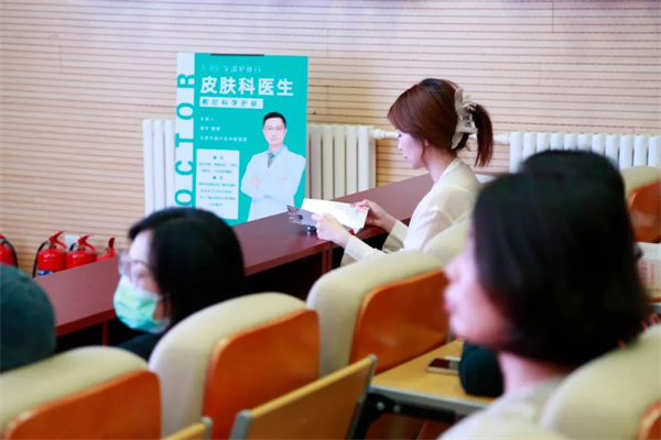 5月24日,為進(jìn)一步加強(qiáng)化妝品監(jiān)管相關(guān)法規(guī)及成果的宣貫,強(qiáng)化廣大師生安全使用化妝品意識(shí),滿足師生對(duì)于科學(xué)護(hù)膚知識(shí)的需求,加深對(duì)行業(yè)的了解,學(xué)院管理系制作了化妝品科普宣傳知識(shí)手冊(cè),并特別邀請(qǐng)到北京市昌平區(qū)中醫(yī)院副主任醫(yī)師周宇教授在報(bào)告廳為全院師生開展了以“皮膚科醫(yī)生教你科學(xué)護(hù)膚”為主題的知識(shí)講座。
