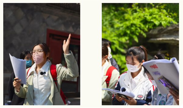 前期,學生利用紙質圖書和網絡資源,對恭王府和北京中華民族博物院的研學資源進行了調研與評估,每位同學根據調研結果,選擇了一個文化角度或重要景觀,根據不同年齡段身心發展特征,設計一次單元課程,并編制了配套的研學手冊,也根據課程內容與流程編寫了授課講稿并熟練掌握。在課程實施中,學生們遵守紀律、精神飽滿、妙語連珠,能順利完成研學活動的各個步驟,并且在課程實施中能注重互動與交流,也能及時根據反饋與現場的環境對講解內容和活動安排進行適當的調整,每位學生都能順利、安全、高質量地完成自己設計的單元課程。老師們對學生們課前的充分準備、課中的精彩表現給予了充分的肯定,也提出了學生個別知識點講解準確度和深度不足,研學手冊題目形式重復度較高,研學活動設計沒考慮到基地實際環境條件等問題,希望大家經過此次實踐活動能發現自身不足,課后對課程設計及實施進行修改、總結和提升。