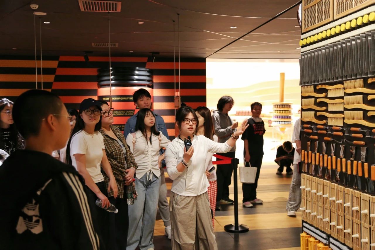 本次活動(dòng)采用“高年級(jí)帶低年級(jí)”的創(chuàng)新實(shí)踐模式。在專業(yè)教師的指導(dǎo)下,2023級(jí)學(xué)生作為研學(xué)導(dǎo)師負(fù)責(zé)全程帶團(tuán)實(shí)施,分組完成了行程規(guī)劃、現(xiàn)場講解、安全預(yù)案等工作;2024級(jí)學(xué)生作為研學(xué)對(duì)象,沉浸體驗(yàn)研學(xué)帶團(tuán)流程及產(chǎn)品設(shè)計(jì)。知蜂堂資深講解員石老師全程參與,不僅進(jìn)行了專業(yè)示范講解,還針對(duì)學(xué)生表現(xiàn)給予點(diǎn)評(píng)及指導(dǎo)。
