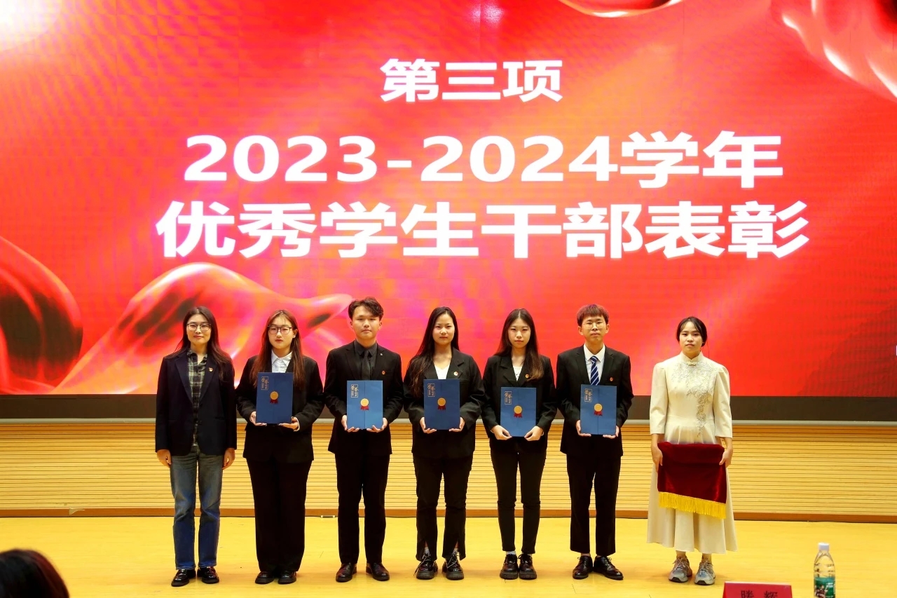 2024年優秀學生干部表彰大會暨學生干部換屆典禮順利落下帷幕。此次會議有力地激勵并強化了同學們向優秀學習、向優秀靠近的決心,促使大家積極進取、奮發拼搏,共同鑄就輝煌未來。