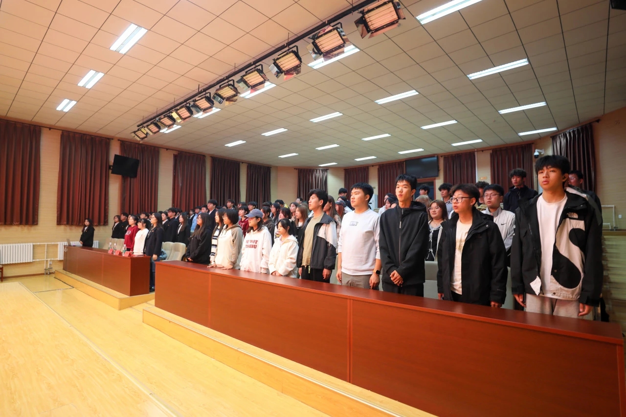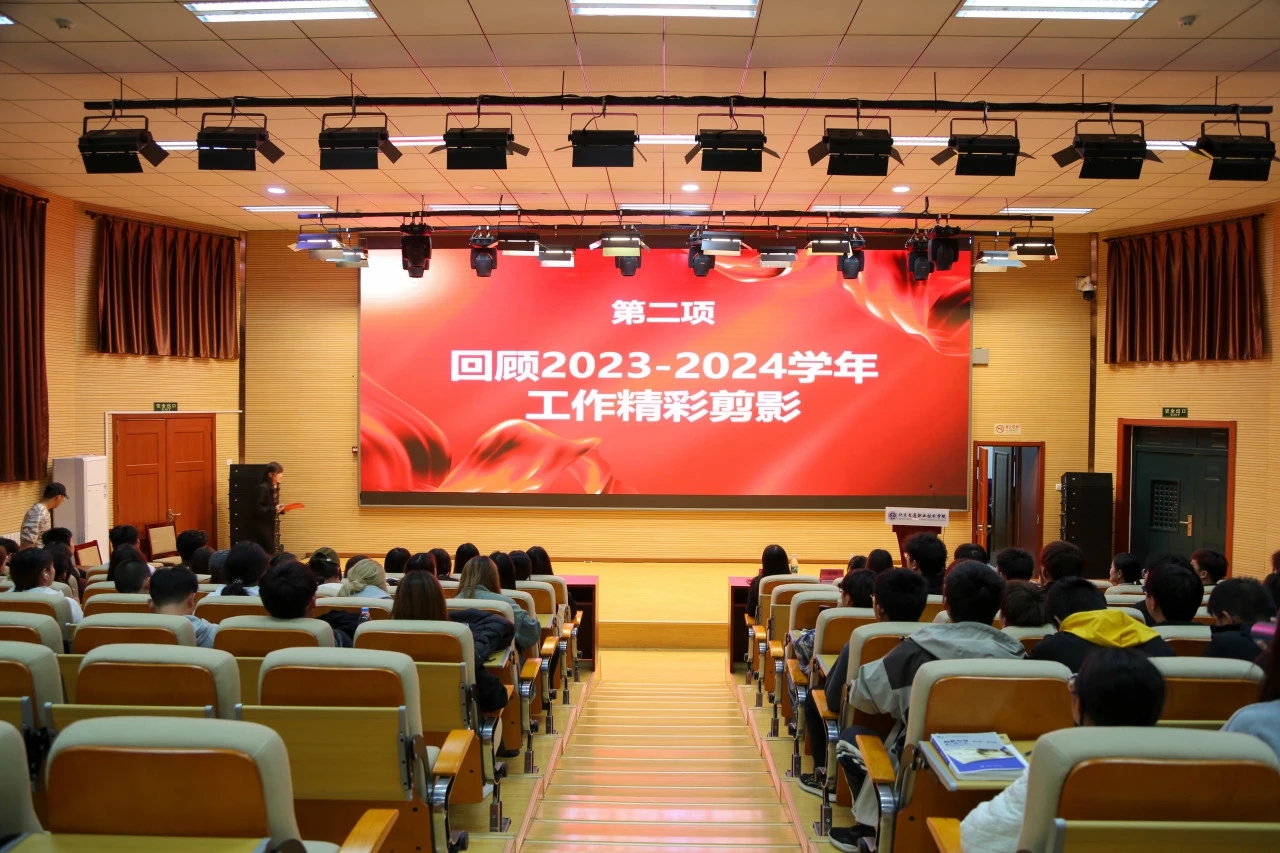 2024年,10月16日下午,北京交通職業技術學院管理系在教二樓報告廳隆重召開2024年優秀學生干部表彰大會暨學生干部換屆典禮。管理系黨支部書記滕輝老師、團總支書記齊曄老師,學生會指導老師劉璐老師出席本次會議,管理系大一全體學生參加此次大會。
