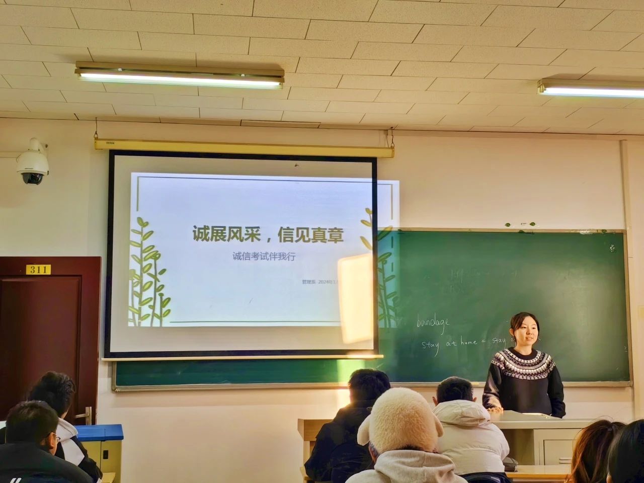 管理系2024級大一學生于2024年12月30日以“誠展風采,信見真章”為主題開展班會。班會由2024級班主任劉璐老師引領講解。此次班會目的在于強化學生的誠信意識,確保每位同學都能積極正確的心態面對即將到來的考試。