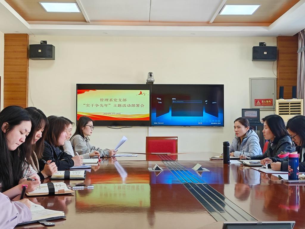 3月14日下午,管理系黨支部在辦公樓二層會議室召開“實干爭先年”主題活動部署會。會議由黨支部書記滕輝主持,支部全體黨員參加了會議.