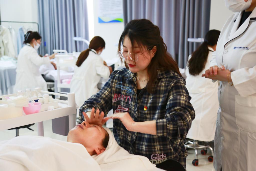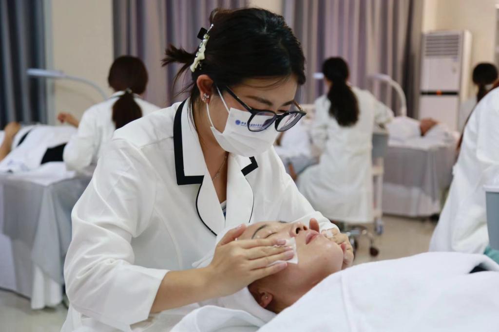 座談交流結束后,與會人員移步至三層皮膚管理教學實踐中心,管理系化妝品專業的師生為學生處黨支部的女黨員們提供了專業的面部皮膚護理服務。體驗結束后,大家紛紛根據自身的感受提出了寶貴的意見和建議,旨在共同提升化妝品專業的服務水平。此次護膚體驗不僅增強了兩個支部之間的交流與合作,還為化妝品專業的學生們提供了一次難得的實踐機會。