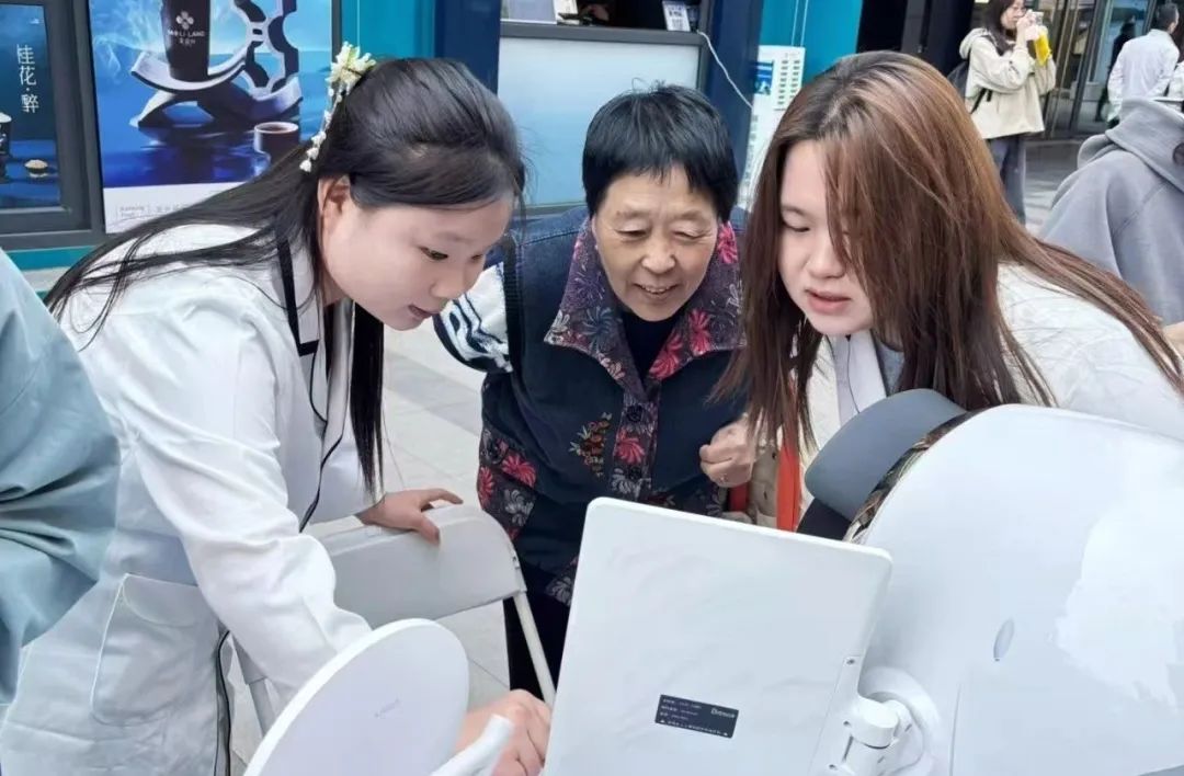 管理系精心策劃了一系列趣味與實(shí)用兼具的活動(dòng)。在化妝品科普宣傳區(qū),師生們向居民發(fā)放護(hù)膚知識宣傳手冊,幫助大家避開選購雷區(qū)。AI皮膚檢測活動(dòng),憑借先進(jìn)設(shè)備和專業(yè)解讀,讓居民深入了解自身皮膚狀況,收獲眾多好評。新中式盤發(fā)體驗(yàn)區(qū),老師現(xiàn)場展示并指導(dǎo)居民打造精致盤發(fā),讓傳統(tǒng)美學(xué)在現(xiàn)代社區(qū)中煥發(fā)生機(jī)。聞香小游戲則別具一格,居民通過聞不同護(hù)手霜的香味猜出名稱,猜對即可獲贈(zèng)護(hù)手霜,現(xiàn)場充滿歡聲笑語,拉近了鄰里間的距離。
