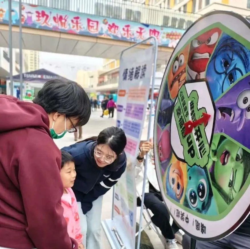 心理健康協(xié)會(huì)設(shè)立的情緒解答展臺成為活動(dòng)中的一抹溫暖亮色??紤]到小朋友們的參與需求,心理健康教育中心老師及心理健康協(xié)會(huì)的志愿者設(shè)計(jì)了一系列趣味游戲,如情緒轉(zhuǎn)盤認(rèn)知、表情模仿猜情緒等。小朋友們踴躍參與,在游戲過程中,師生們引導(dǎo)他們認(rèn)識不同的情緒,學(xué)會(huì)正確表達(dá)和調(diào)節(jié)自己的心情,同時(shí)幫助家長更好地關(guān)注孩子心理健康,促進(jìn)親子間的理解與溝通。